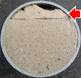 ・材料分離、気泡の減少による材料沈下が起こり、上部に空洞ができている。
